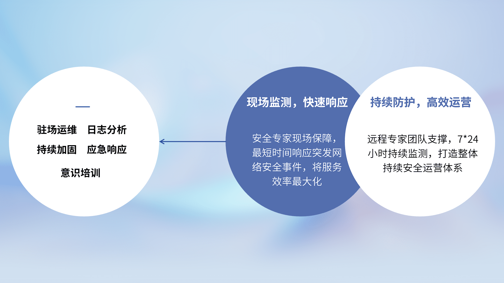针对客户行业特性,,,,提供专属的一站式安全管理服务,,帮助客户全面感知网络空间威胁,,,通过安全专家的线上、、、、线下防护支持,,实现风险闭环,,将安全保障常态化,,为客户打造常态化安全运维运营服务。。。