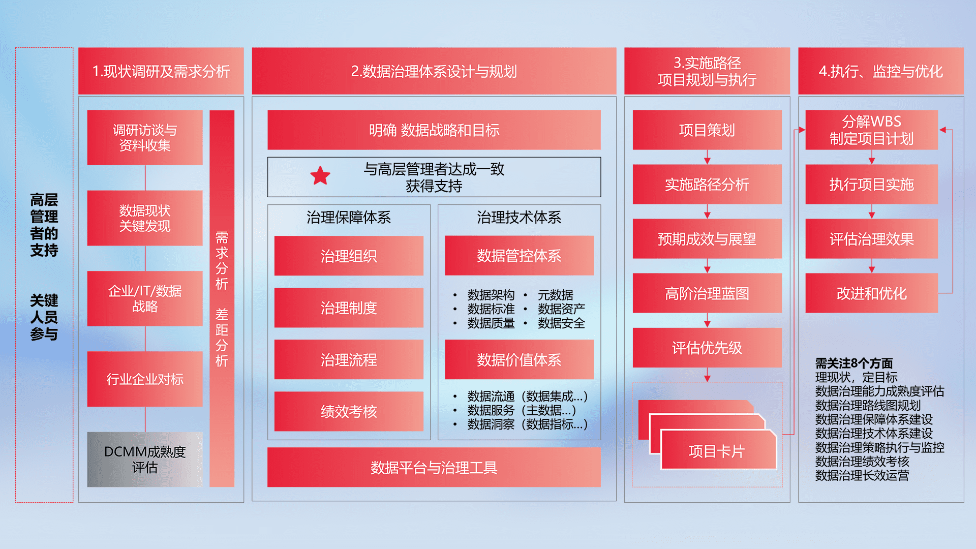制定并执行统一的数据标准,,,,规范数据定义和格式,,,消除冗余和不一致性,,,实现跨部门和跨系统的数据一致性,,,,为企业提供标准化的数据基础。。。。